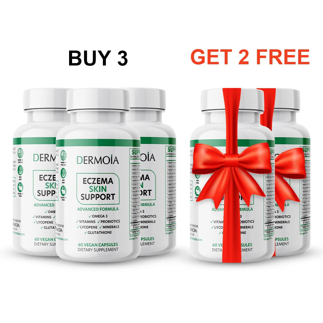 DERMOIA eczema support supplement offers a range of benefits for individuals dealing with this chronic skin condition. Firstly, our supplements contain key vitamins, minerals, and natural ingredients that can help alleviate eczema symptoms such as itching, inflammation, and dryness. They work from within the body to promote skin health and strengthen the skin's natural barrier, reducing the frequency and severity of flare-ups. Additionally, DERMOIA eczema support supplement can contribute to overall well-being by supporting the immune system and reducing the risk of secondary infections. They provide a convenient and holistic approach to eczema management, complementing topical treatments and lifestyle changes, ultimately improving the quality of life.