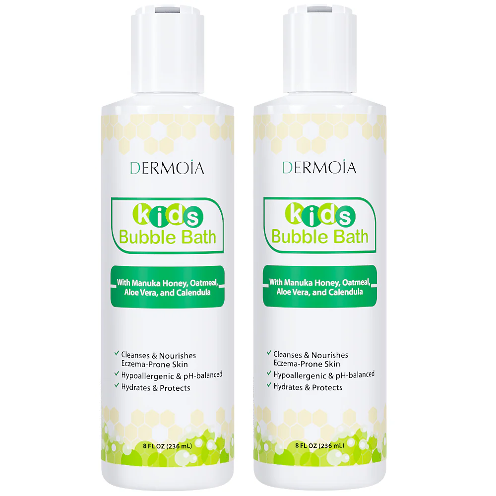 At DERMOIA, we understand the importance of providing your little ones with a bubble bath experience that not only sparks joy but also cares for their delicate skin. This kids' bubble bath formulation is thoughtfully crafted with ingredients specifically chosen for their potential benefits in addressing eczema concerns. Aloe vera leaf juice and vegetable glycerin provide soothing and moisturizing properties to alleviate dryness and irritation, while sodium lauroyl methyl isethionate, cocamidopropyl betaine, and sodium methyl oleoyl taurate act as gentle surfactants for effective yet mild cleansing without stripping the skin of its natural oils. The inclusion of colloidal oatmeal, known for its skin-calming attributes, contributes to soothing irritated skin, and calendula extract further enhances its anti-inflammatory properties. Leptospermum scoparium mel (Manuka Honey) introduces potential antimicrobial benefits, offering a holistic approach to caring for children's delicate skin during bath time.